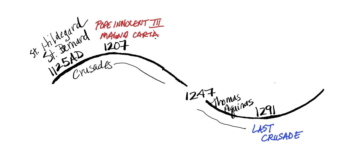 At the beginning of this cycle, St. Bernard of Clairvaux, a well-known Cistercian monk supported his friends who had just formed the Knights Templar Order (1118 - 1312) by talking his friend, the pope, into giving the knights his blessings. The Knights Templar Order was formed to protect the pilgrims and crusaders as they traveled through Europe to Jerusalem. The knights did more than protect them. They developed a sophisticated banking system to protect the pilgrims’ money as well. Then St. Bernard wrote the textbook for the knights so that they would be chivalrous and not kill women and babies. During the time of Power, Pope Innocent III, who regularly tops the most-powerful-pope-in-history Google searches, initiated some particularly diabolical crusades. Since Saladin, the founder of the Ayyubid Dynasty (Egypt to Syria area), had built an army powerful enough to defeat the crusaders, and had taken back Jerusalem, Innocent sent the crusaders to attack the Cathars in France. The Cathars were seemingly peace-loving, early-version hippies, who Dominic of Osma (responsible for the Dominican Order that was later responsible for the Spanish Inquisition) despised for some reason. Dominic talked Pope Innocent into eradicating them, and the pope sent French people to kill other French people. (Sigh. The Power time does that.) Meanwhile, another group of crusaders in 1202 got lost or forgot their instructions and went and attacked the Christian city of Constantinople (Oops!). At the Justice time, St. Thomas Aquinas, a fan of Aristotle, combined faith and free will, wrote about Natural Law and logic, during the same time period that Bishop Robert Grosseteste and Friar Roger Bacon were forming the roots of a scientific movement. At the peak of Reform, in exactly the year 1291, the last crusade dragged their feet home after being defeated at Acre. The knights dispersed. Some went to form the first (and still only?) direct democracy in the world, Switzerland. Some went to Portugal and Scotland where they started secret and mysterious orders that are food for Dan Brown novels.
